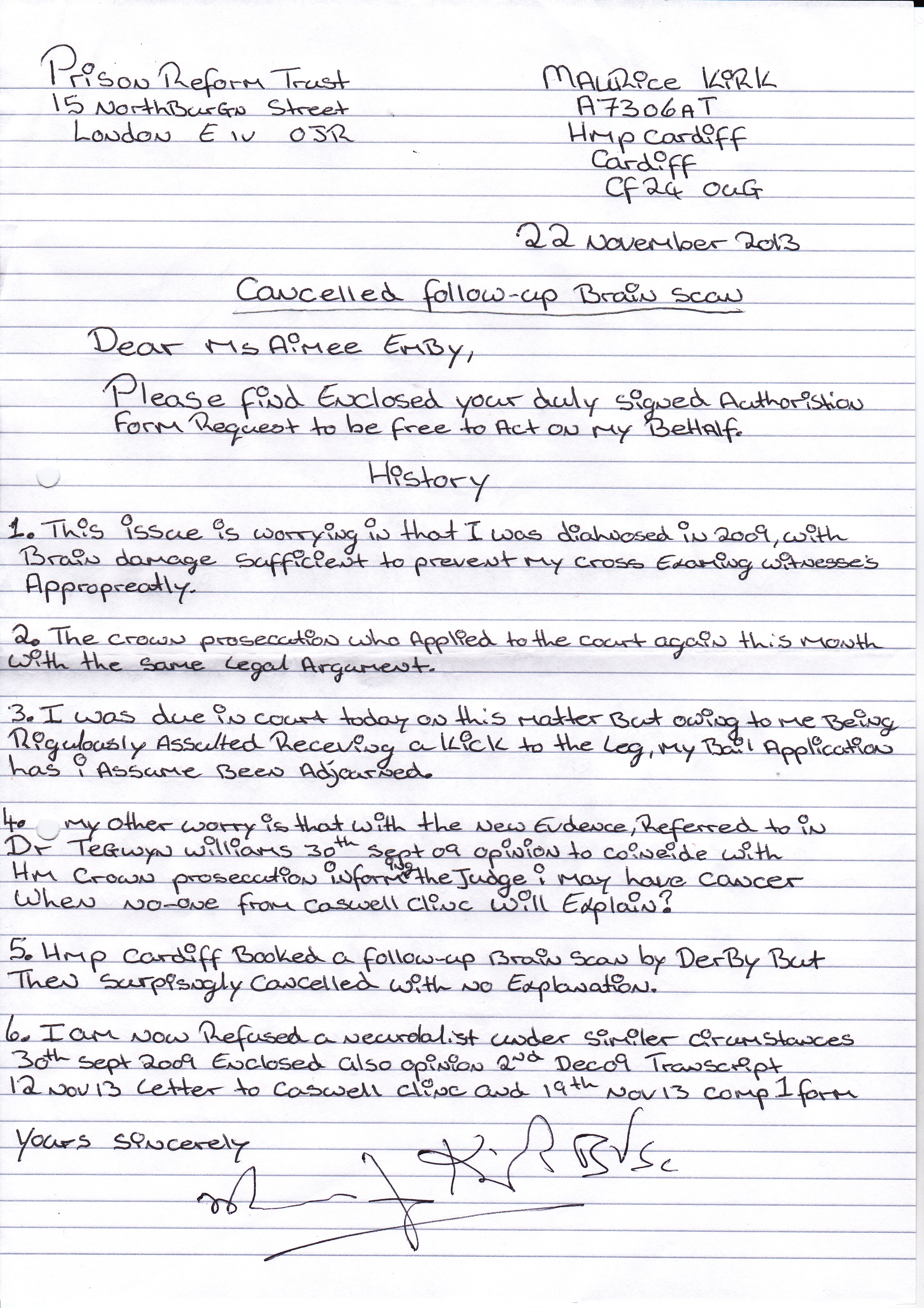 And his own witness statement regarding Maurice’s attempts to get to truth and justice on his own website, in particular on Prison Psychiatrist refers Maurice to a Neurologist and more from the Good Doctor.