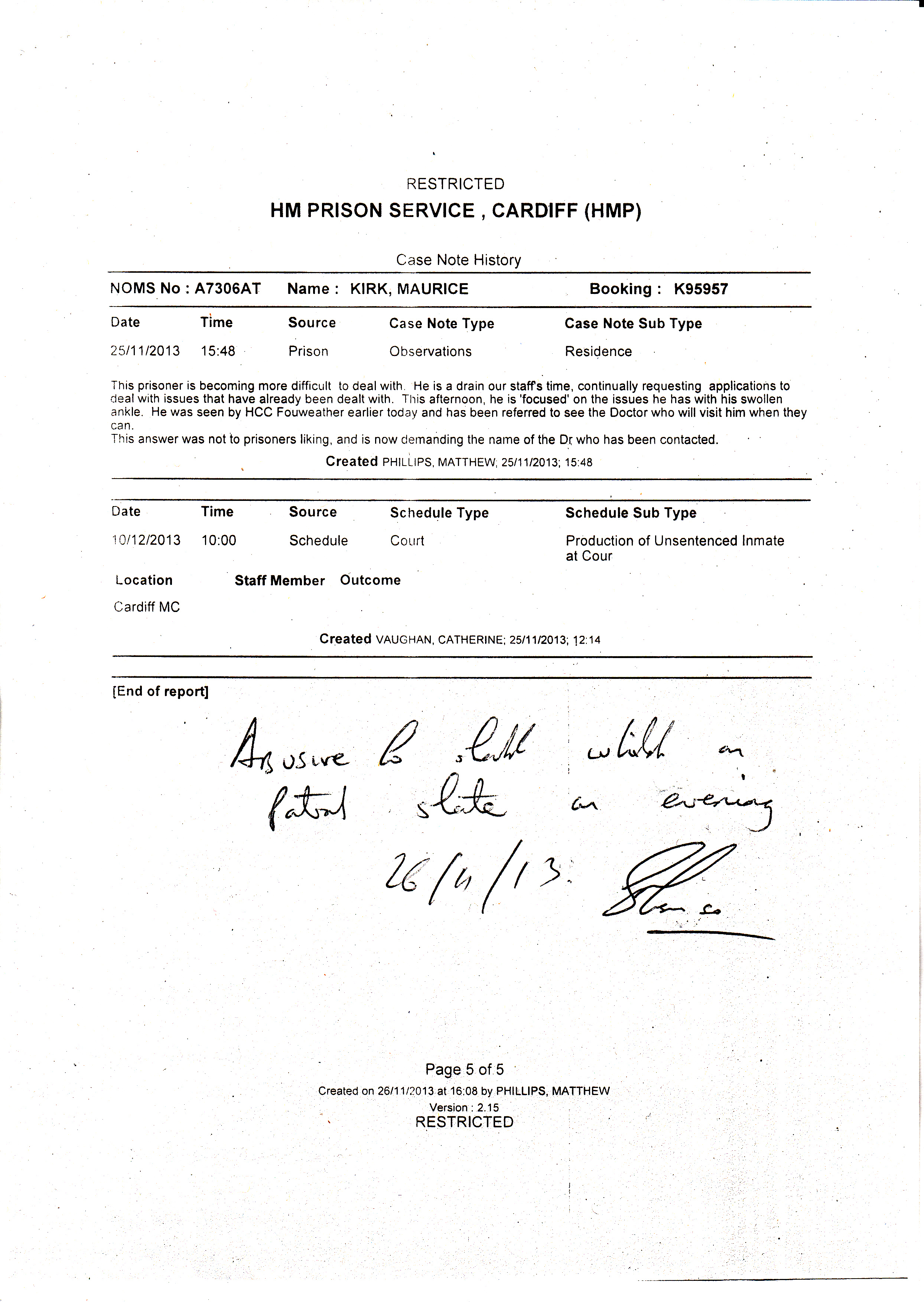 - to get pain killers not just from other inmates on the ‘lifers’ wing where he has been put, while technically ‘on remand’, i.e. without any charges