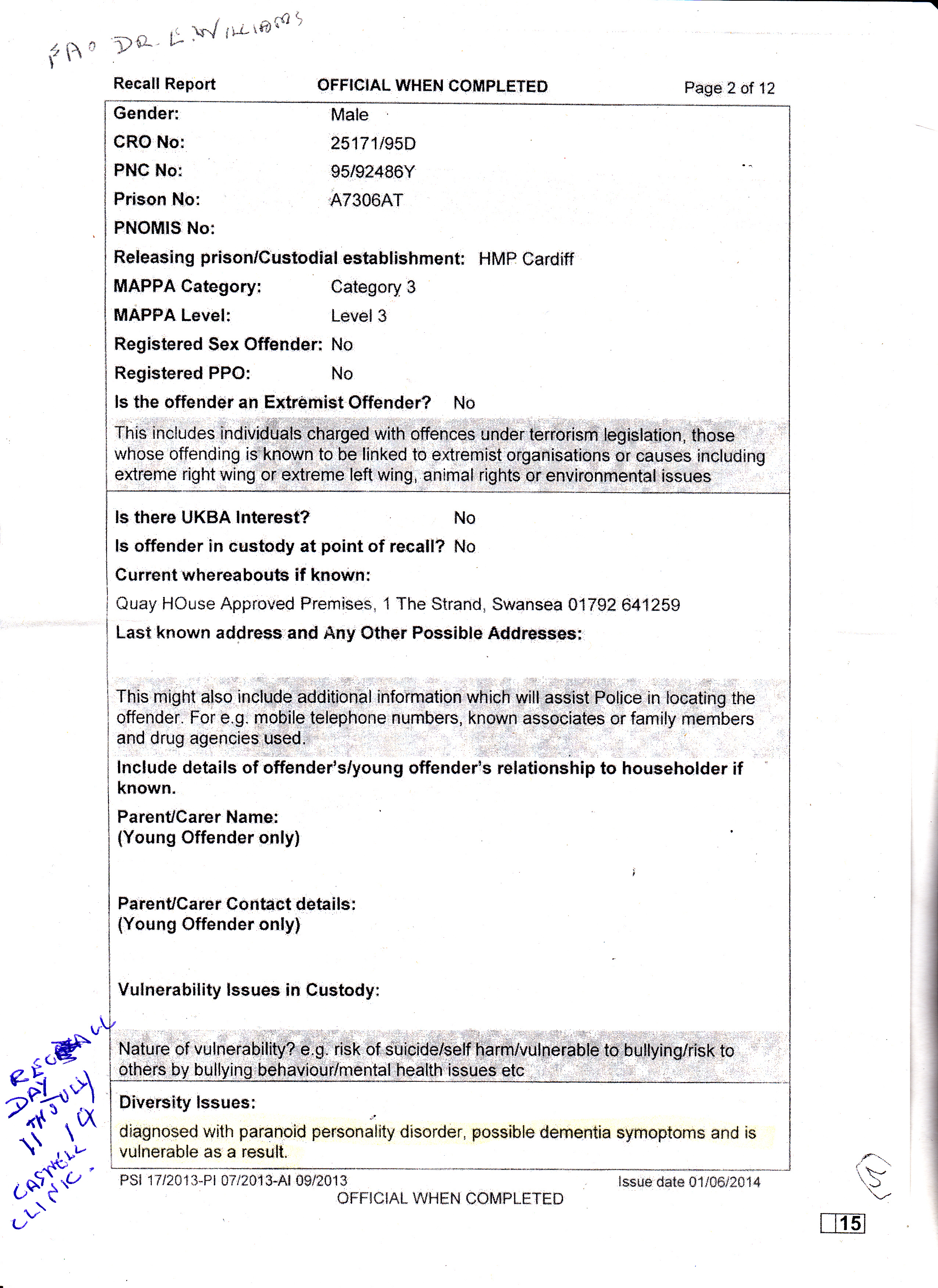 2. the doctor employed by SWP who wrote that Maurice has ‘significant brain damage’ so that he could be carted off into the high security prison Ashworth