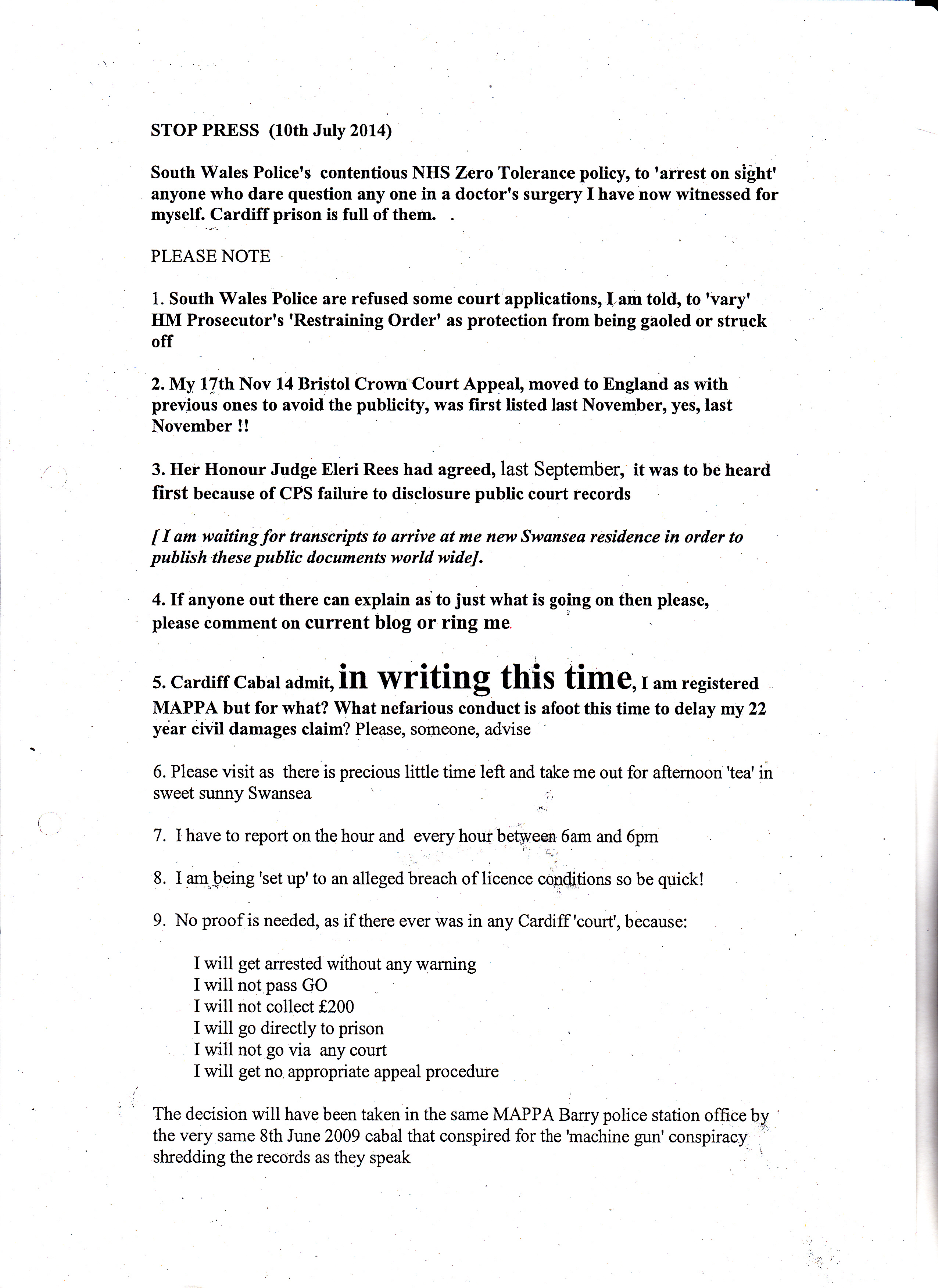 “They are throwing everything now bar the kitchen sink!” Maurice writes from HMP Swansea which includes this excellent letter by HHJ Seys Llewellyn, the best of the over 10 judges Maurice had dealings with.