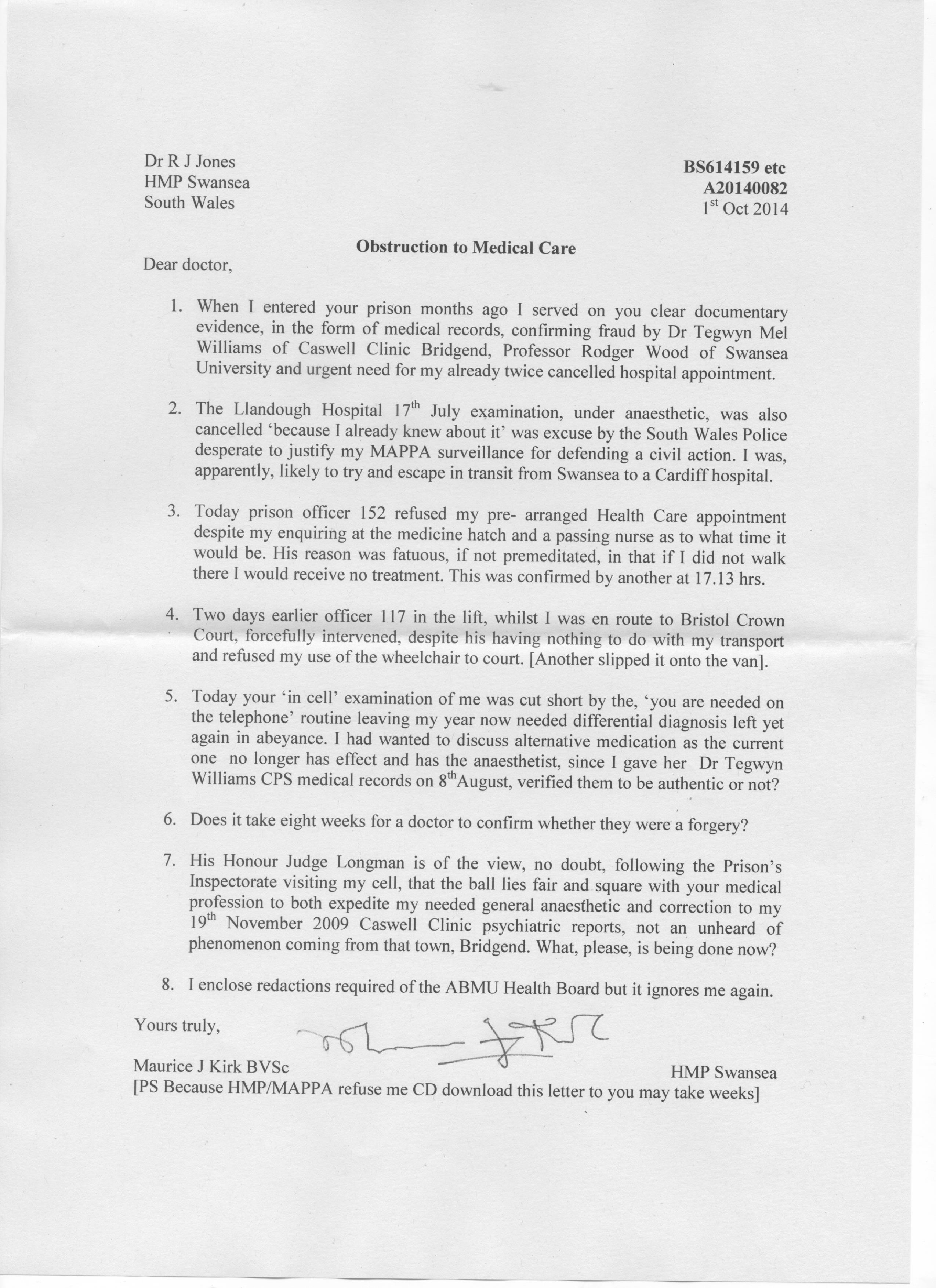 Pingback: More horrors for #MauriceKirk – from a fellow prisoner. Please call #HMPSwansea 01792 485300! | Flying Vet challenges South Wales Police