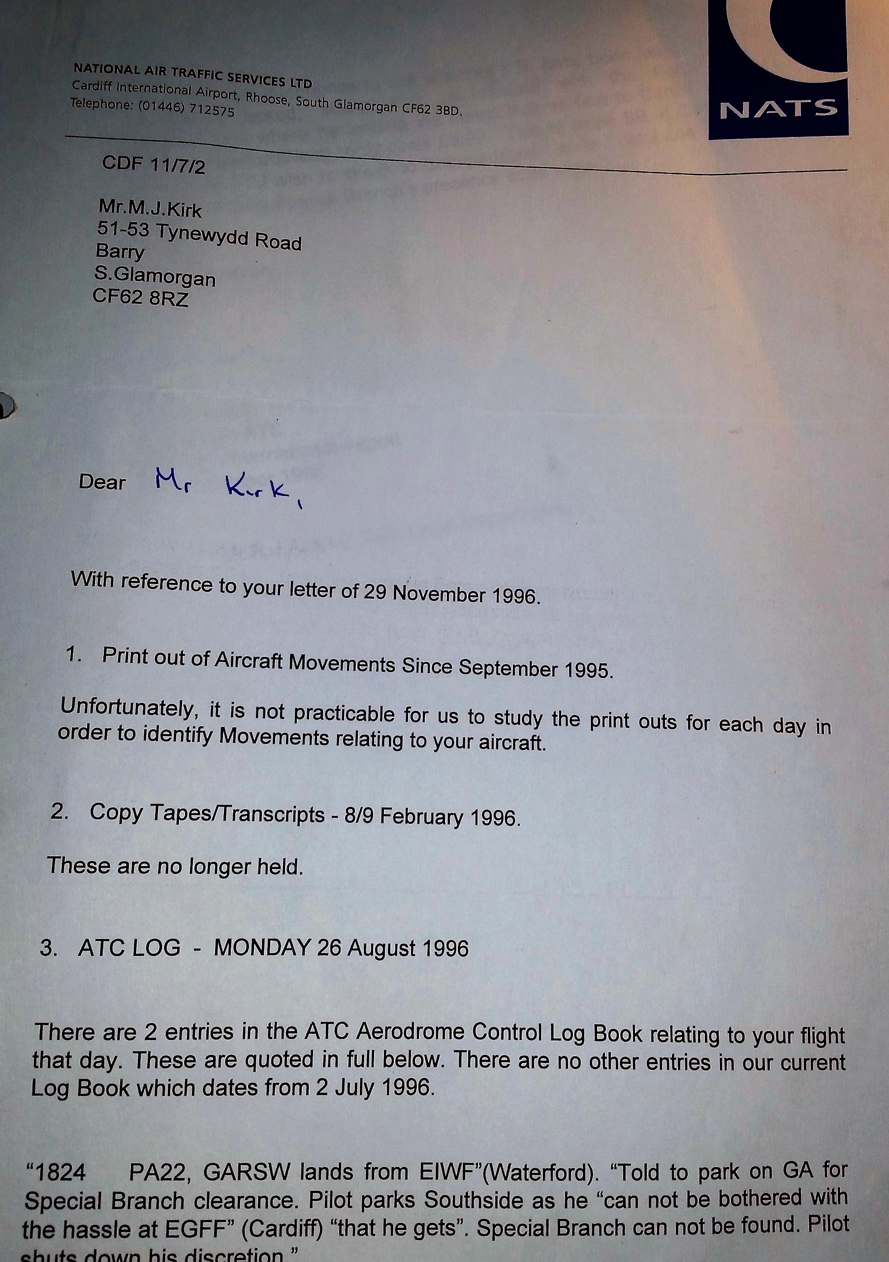 No mention or production of police records of ‘no tax’, of course was due to senior officer intervention as was the case in the Civil Aviation Authority’s investigation following the dangerous flying by the police helicopter (see 2nd Action para 7). The latter is currently subject to an FOI application following its reluctance to even admit over the telephone they had given the south Wales Police yet another ‘rap on the knuckles’ as in 2nd Action para 2 ‘smuggling in from Ireland’ in an early 60s two seat Piper Cub.