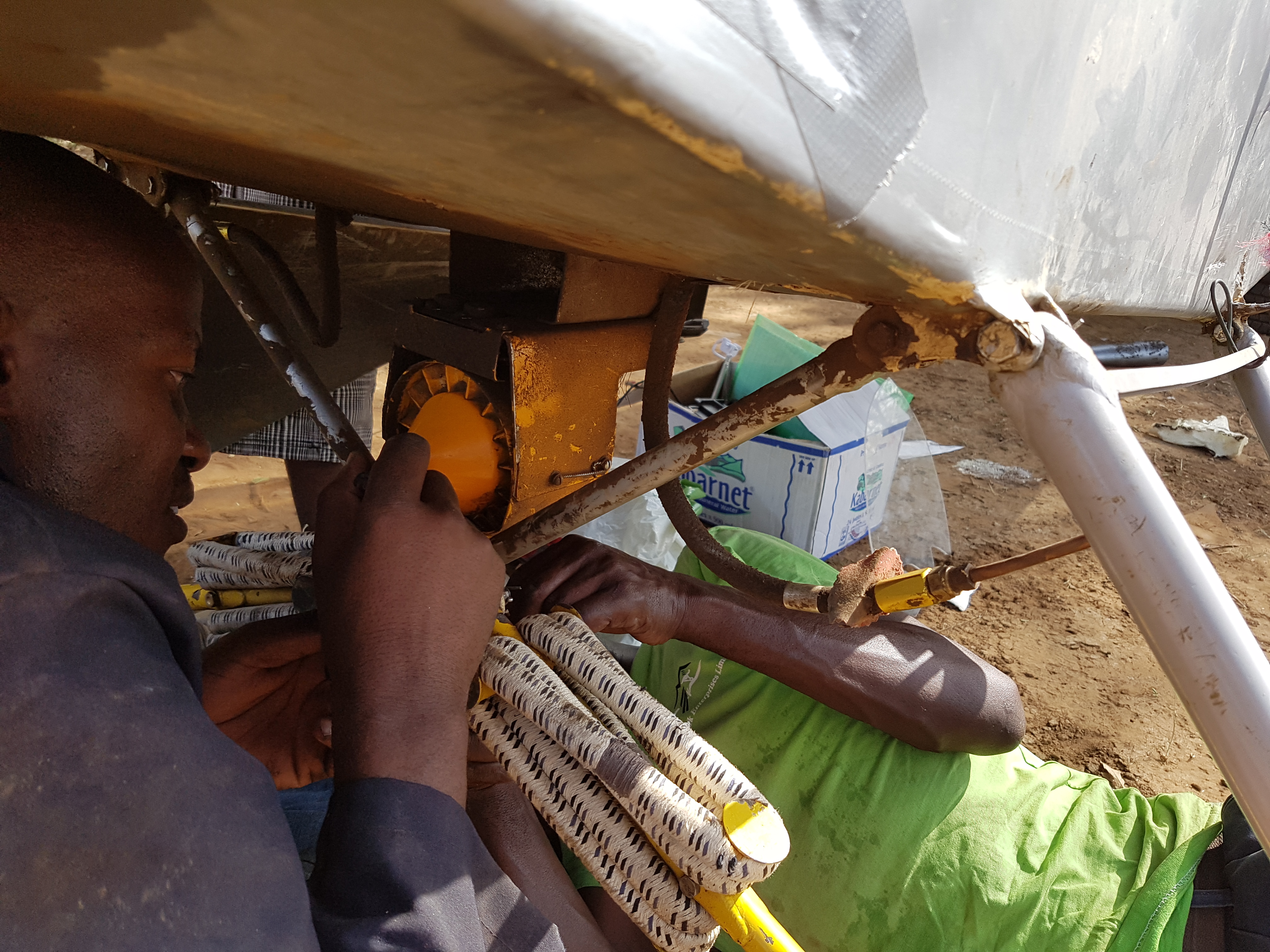 So, rock for a mallet and multi-knife and little else to change an under-carriage system for a Cub J3 L4 in the blazing heat!