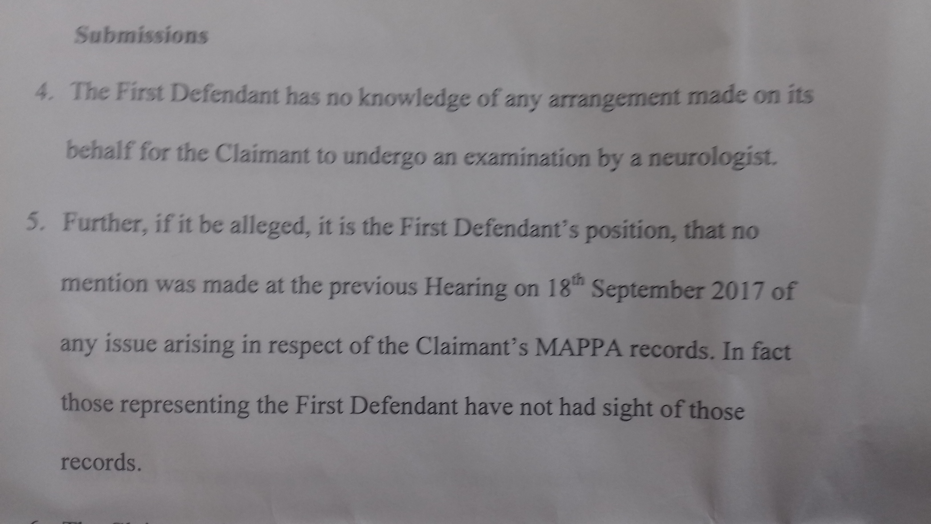 - on 16th October 2017 not even the Ministry of Justice knew about my MAPPA registration as they say in this paragraph 5!
