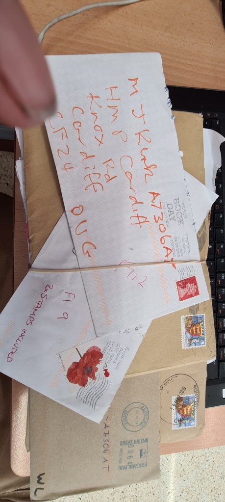 Owing to my visiting John yesterday, prior to his operation, caused me to now examine the huge pile of stopped G4S Parc and Cardiff prison letters that has been sitting on top of my kitchen cupboard since last year.