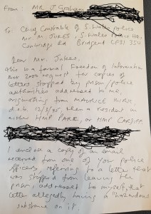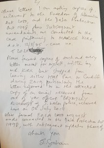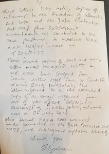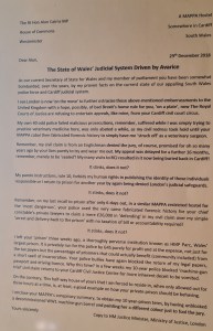 I need, meantime, to collect short succinct accounts of South Wales police atrocities for a national newspaper that has taken an interest in supporting our cause.. This may lead to a long overdue Ministry of Justice delegation from London to thoroughly investigate the appalling state of our southern welsh law courts, police and prisons.