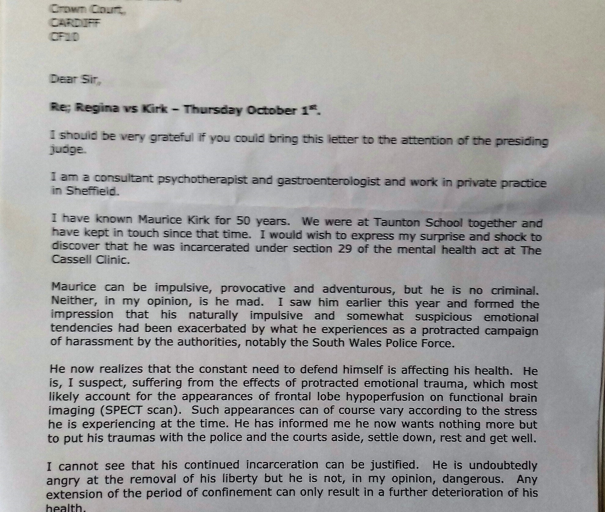 In a secret Cardiff Crown Court , on 2nd December 2009, a police blackmailed quite unqualified welsh doctor tendered to the presiding judge, in my absence, when not represented, a fictitious account of how I had ‘irreversible brain damage’, to be MAPPA level 3 Category 3 partly due to my having ditched in the Caribbean and been a long term drinking partner of actor, Oliver Reed Esq