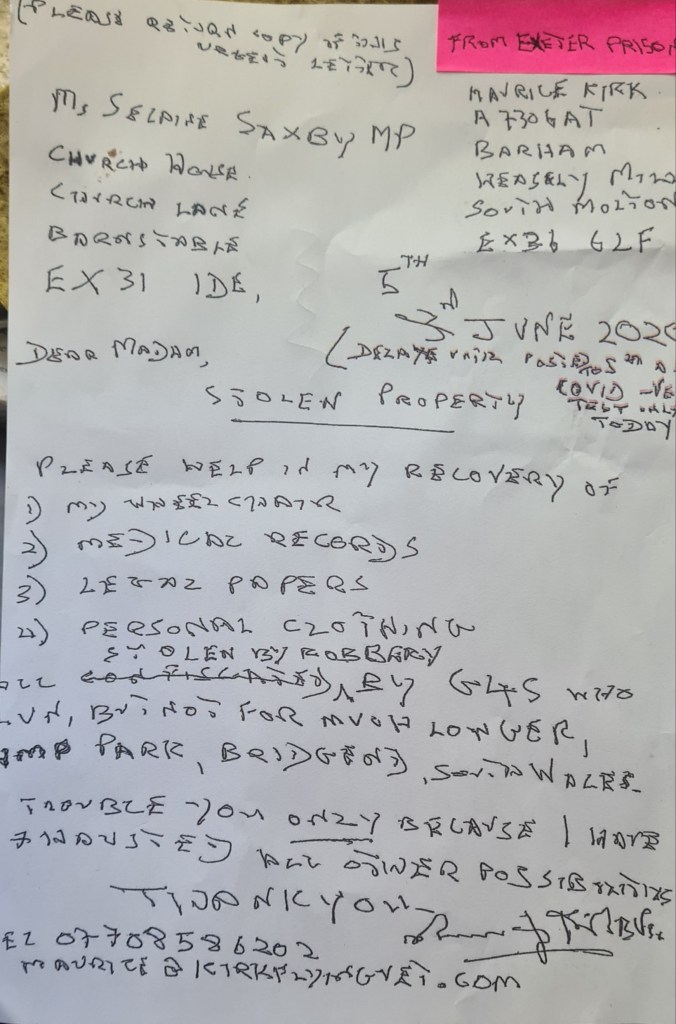 Crown Court directed the CPS to obtain from my Devon MP data supporting the fact Ms Selaine Saxby had asked, on my behalf, for G4S HMP Parc for the return of my medical and legal records, wheelchair and clothes, stolen from me on 1st Nov 2019 when brutally robbed by G4S prison staff