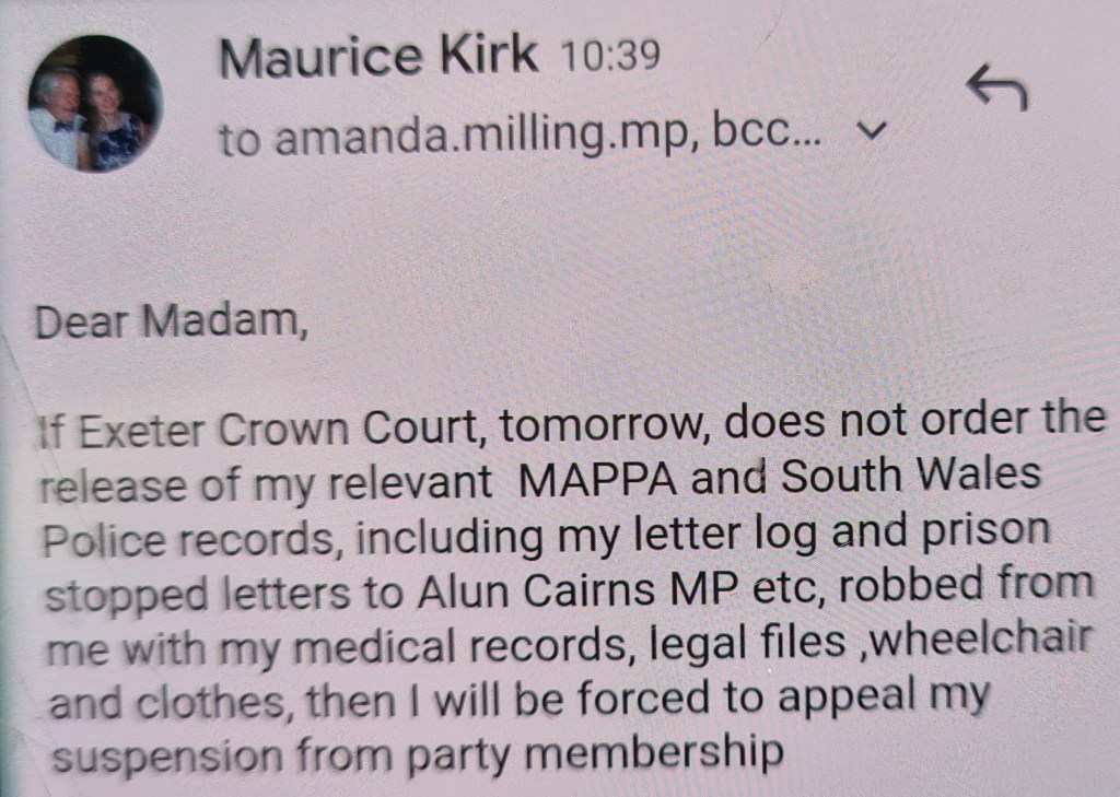 My telephone number is 07708586202 & Email maurice@kirkflyingvet.com if you can assist. please, in establishing why I am blocked from communicating with anyone in the Conservative Party’s administration?
