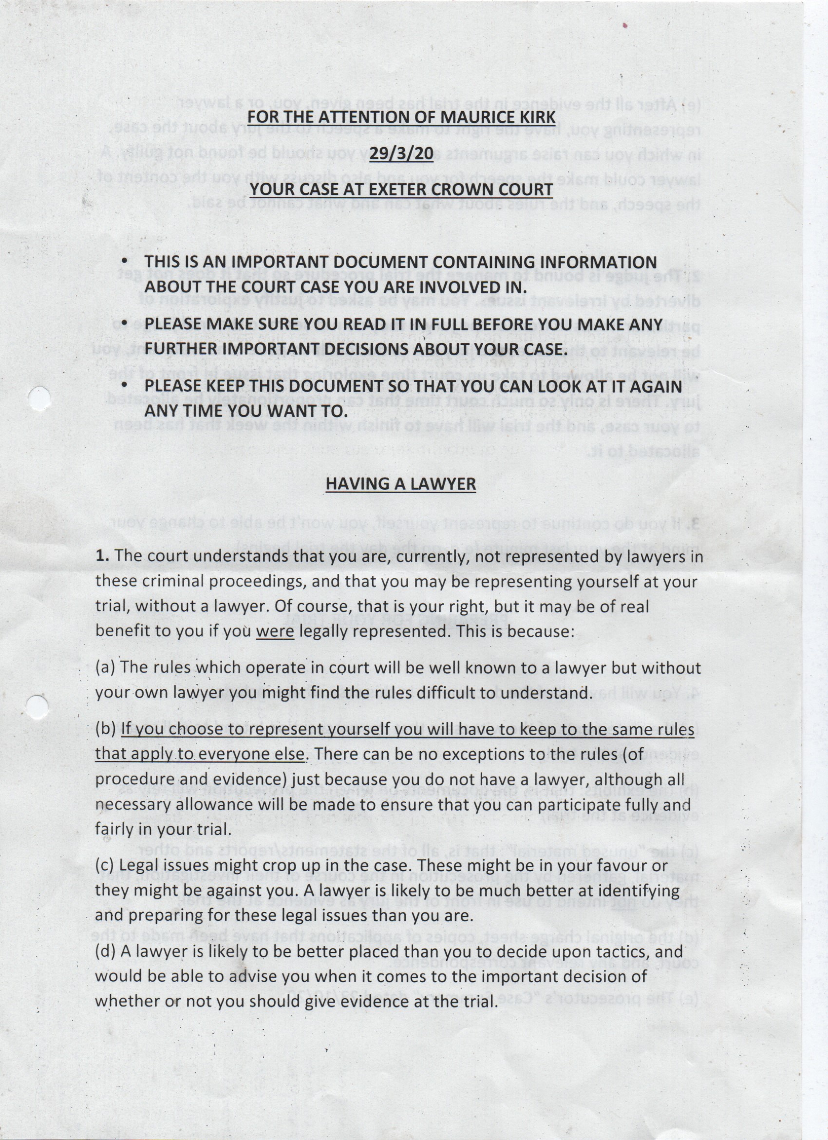 FAO of HM Crown Prosecution Service & Exeter Crown Court T20200177