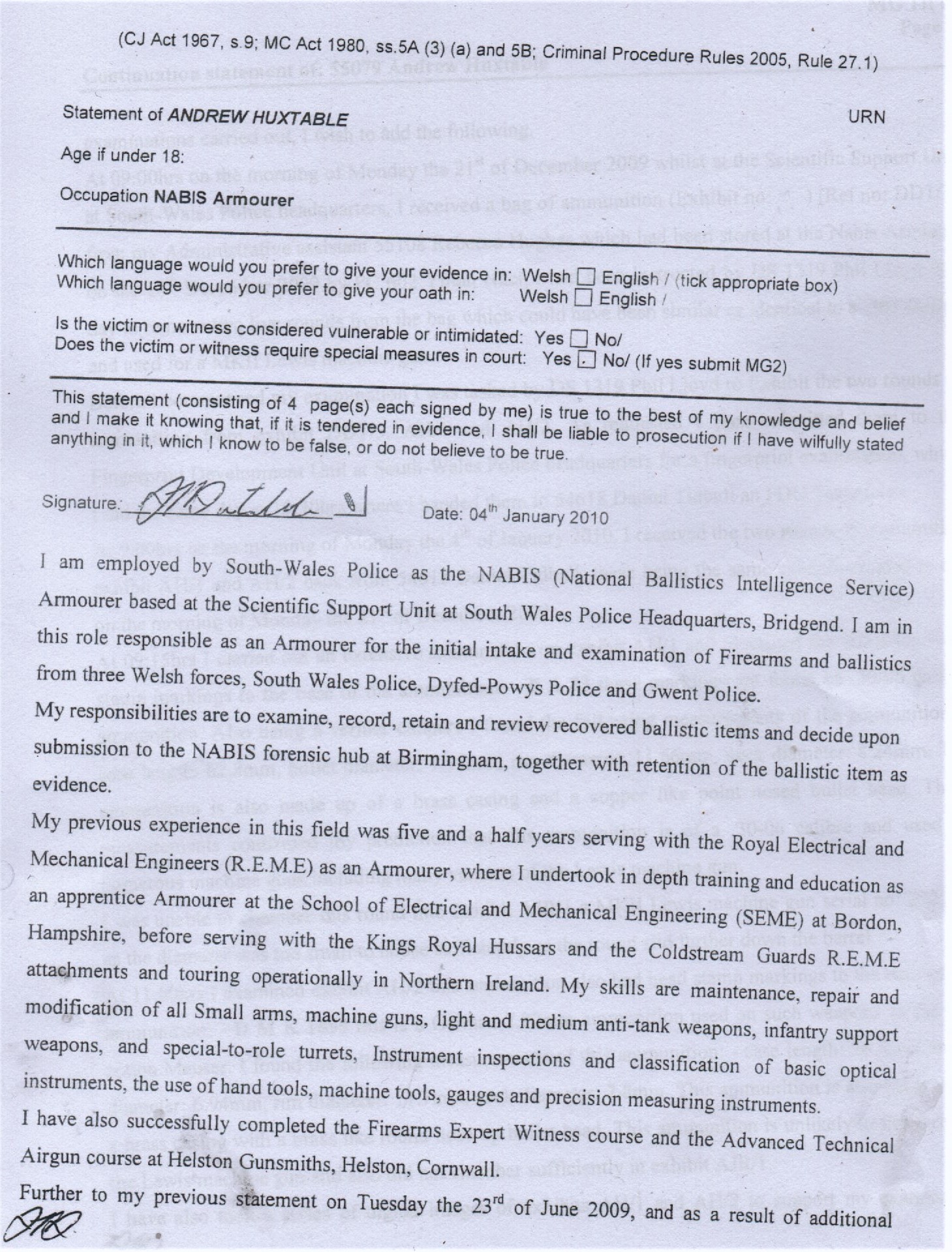 - So desperate were the South Wales Police, at trial, it had both unblocked the unrifled barrel and had painted the exhibit ARH1 a completely different colour to when I had owned it in order to try and fool the jury. This whole matter now needs a police investigation from England