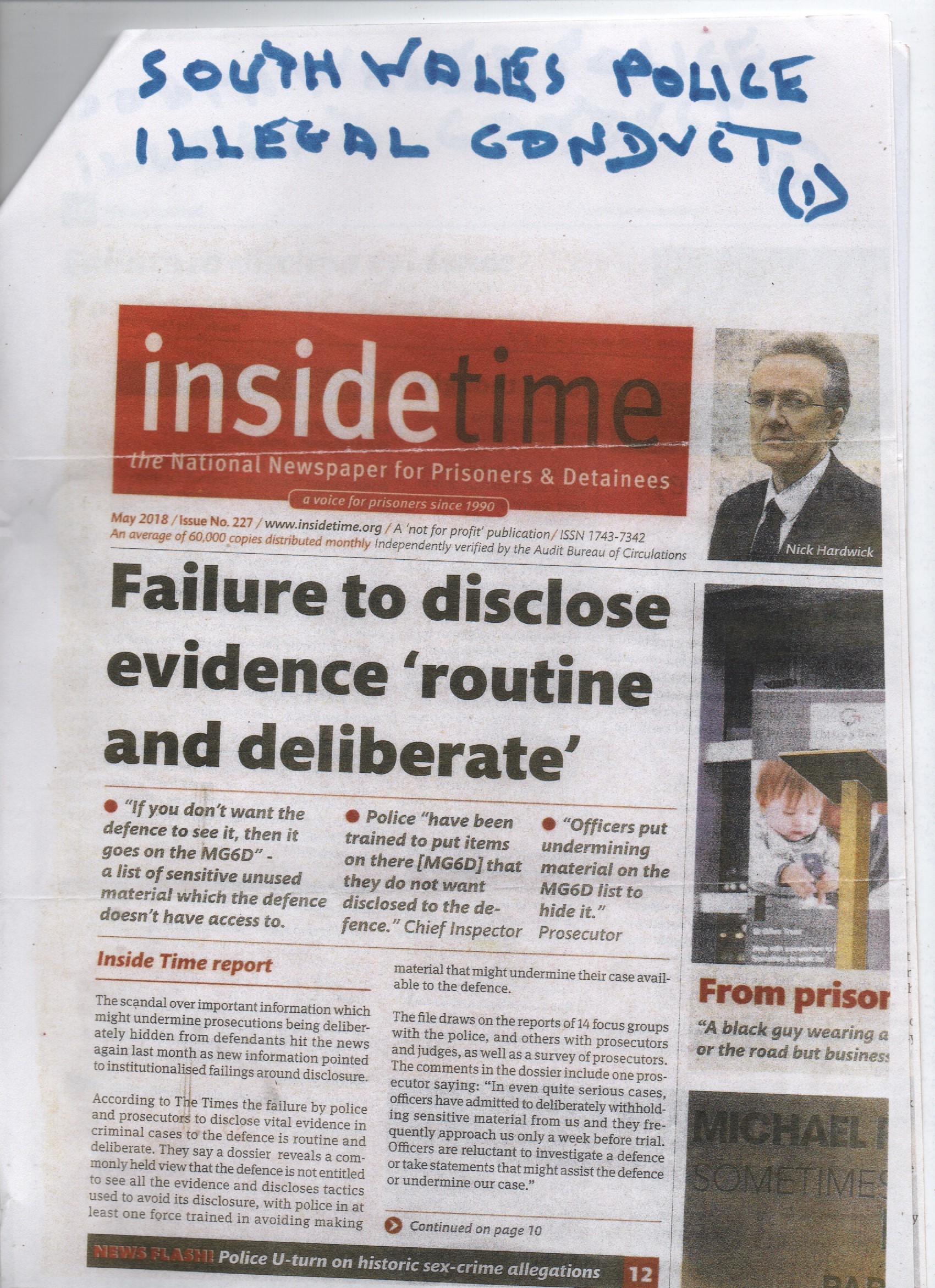 a sample of hidden evidence to disrupt my civil claims against the South Wales Police