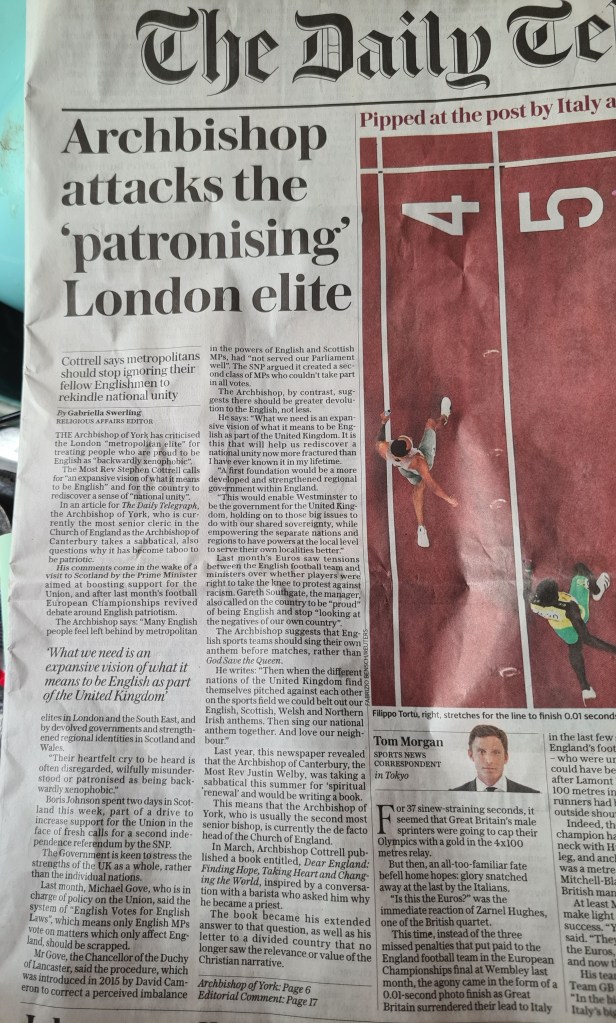 Today’s Daily Telegraph article by the Archbishop of York has been far, far too long overdue in the rescuing of my country of England.