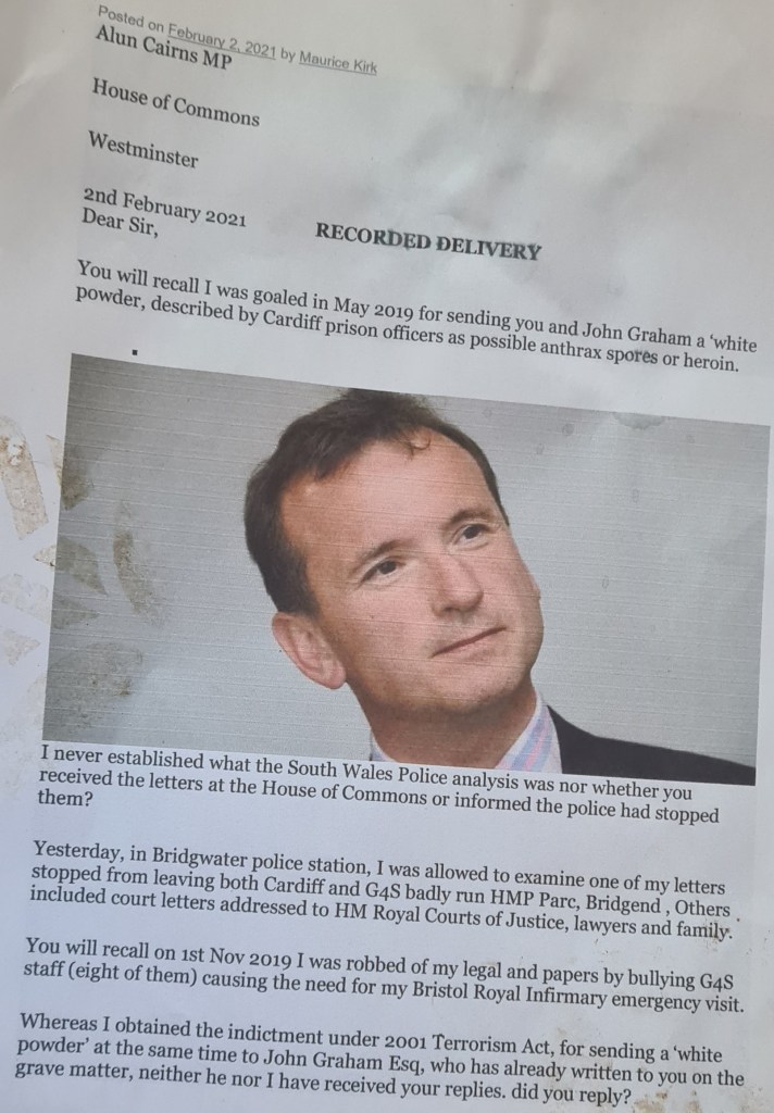 Ms Saxby immediately wrote to the G4S barbarically run Welsh prison, where the brutal robbery took place and has also between repeatedly ignored, of course, ever since.