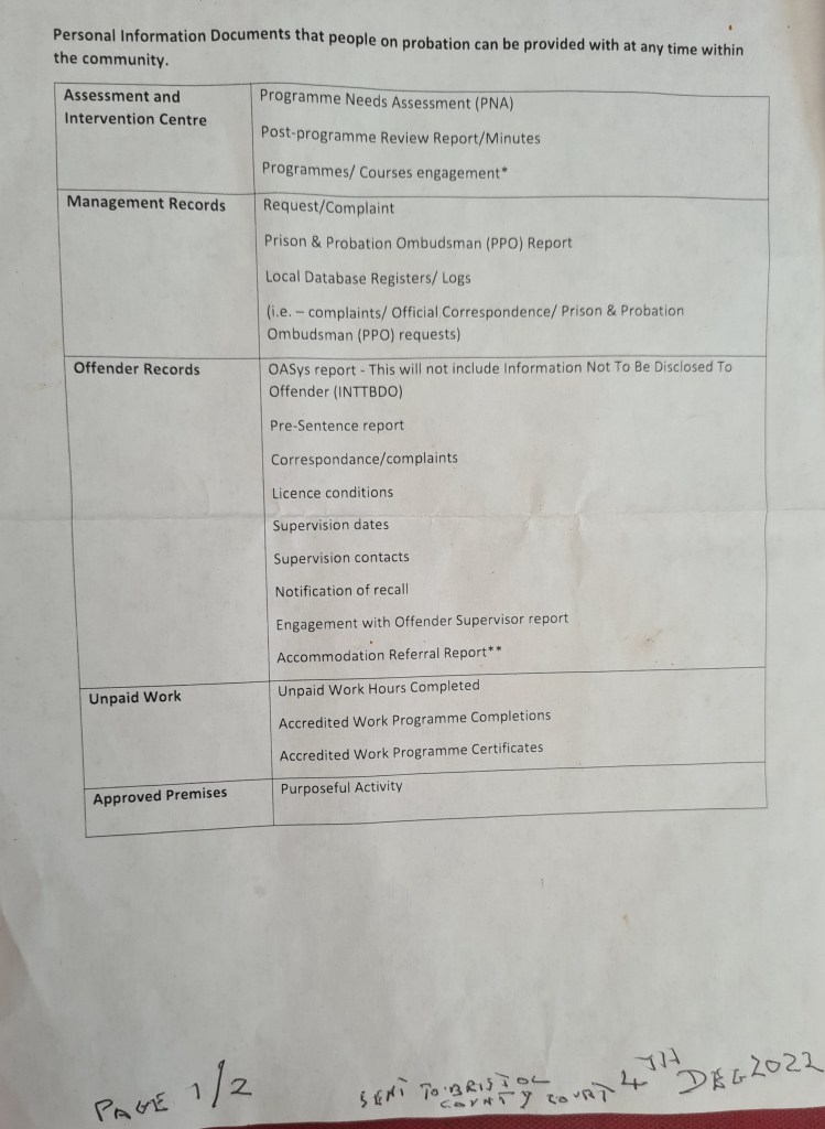 The defendant has 6 weeks to disclose from the list below but the judge knew that even if the South Wales Police, under my 24/7surveillance as a MAPPA victim, were to release my full prison and police custody records back to the prison governor and or court, they would all be destroyed to protect the countless G4S prison staff and lawyers’ pensions.